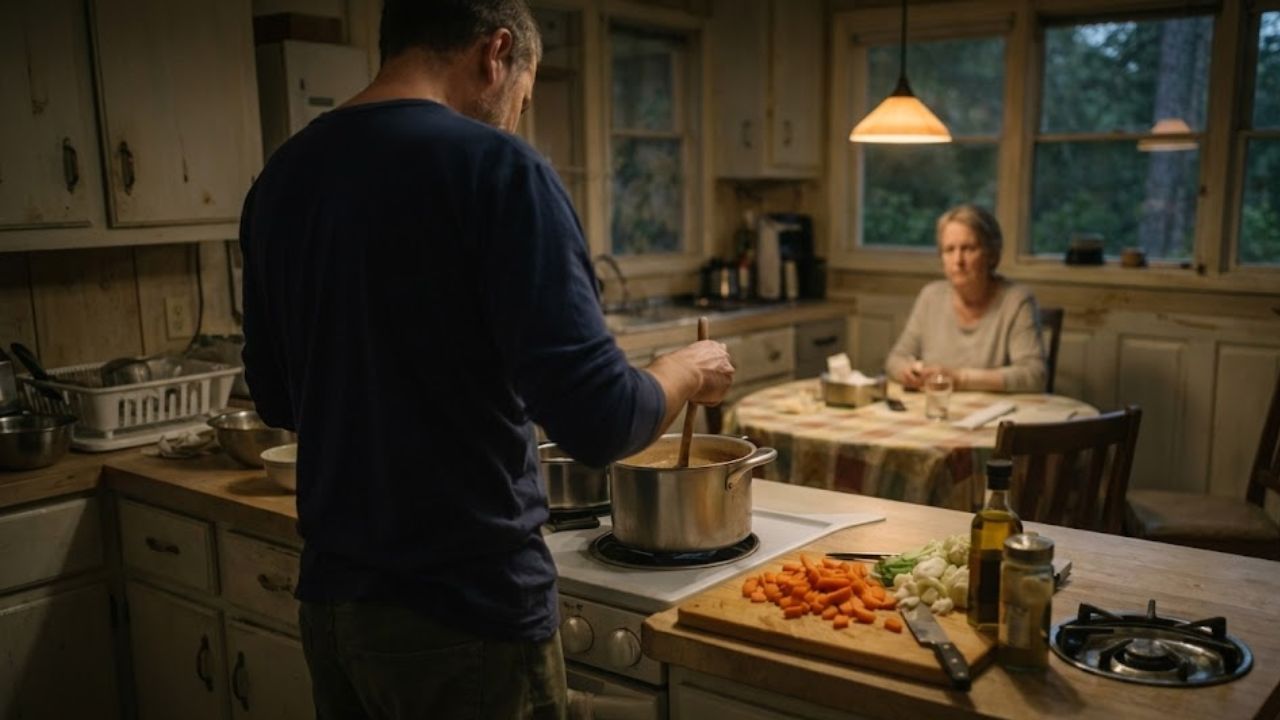 My mom stopped cooking after my dad died. The house went dark for eight months. I stopped trying to fix her and just showed up and cooked in her kitchen without asking. I did not talk to her. I left the food on the stove. The next day the pot was empty.