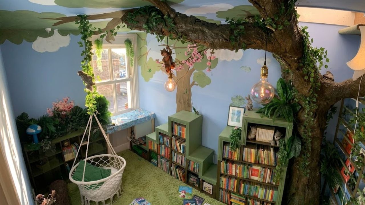 A children’s library space was thoughtfully designed with a cozy setup and a learning-friendly environment.